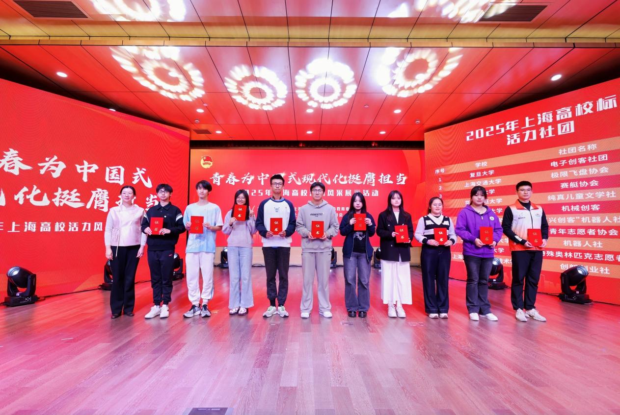 11月16日,由共青团上海市委员会、上海市教育委员会主办的2025年上海高校活力风采展示活动在上海对外经贸大学举行。机械与汽车工程学院“机器人社”受邀参加本次风采展示活动,并最终荣获“2025年上海高校标杆活力社团”称号。