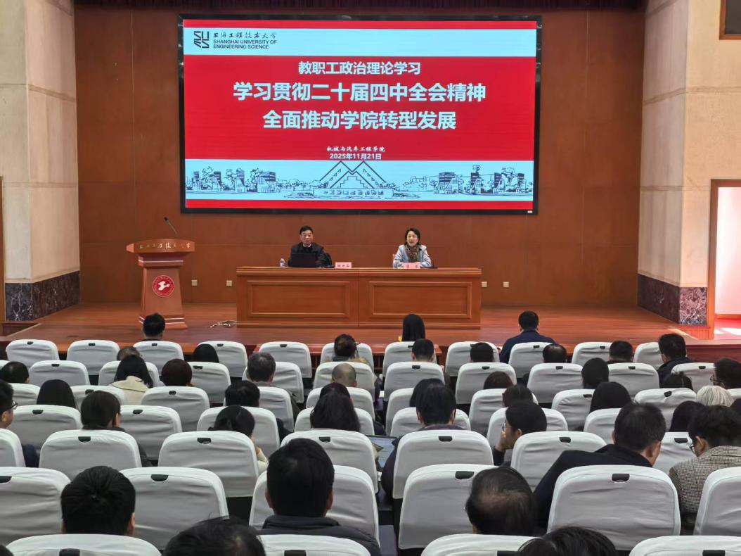 为深入学习贯彻党的二十届四中全会精神,全面推动学院转型发展,11月21日,机械与汽车工程学院党委召开学习贯彻党的二十届四中全会精神专题理论学习会。特邀校关工委副主任陈力华作《不忘初心 牢记“工程大”使命——上海工程技术大学发展史》专题辅导报告。学院全体教职工参加学习,学习会由学院党委书记虞蓉主持。