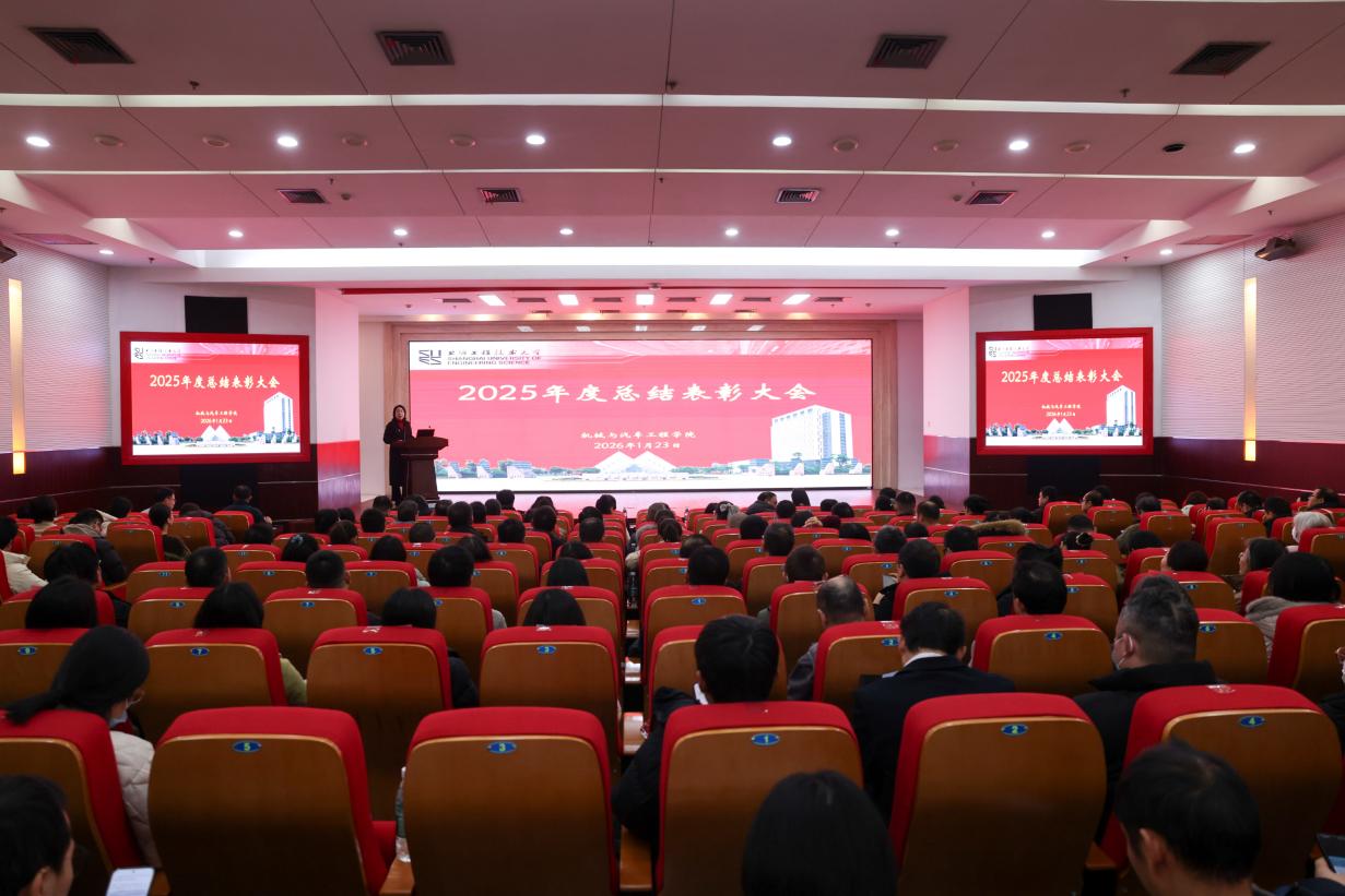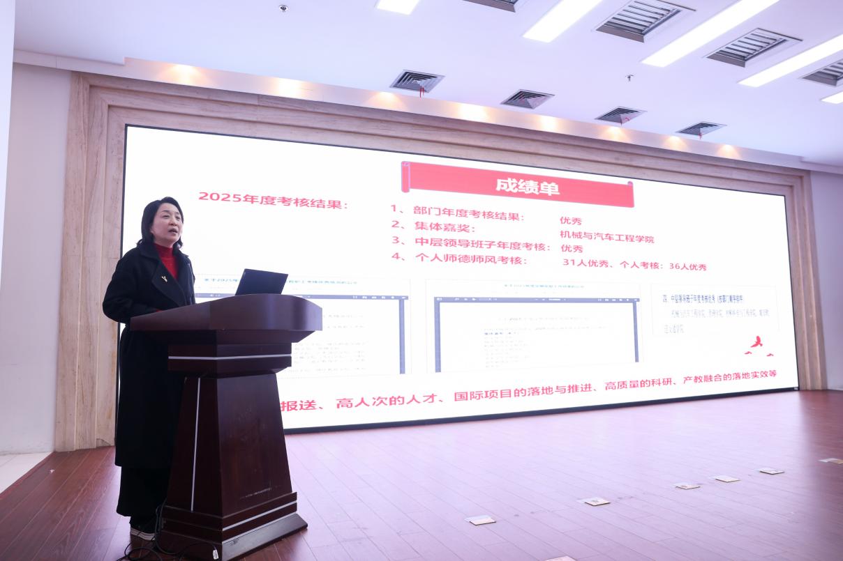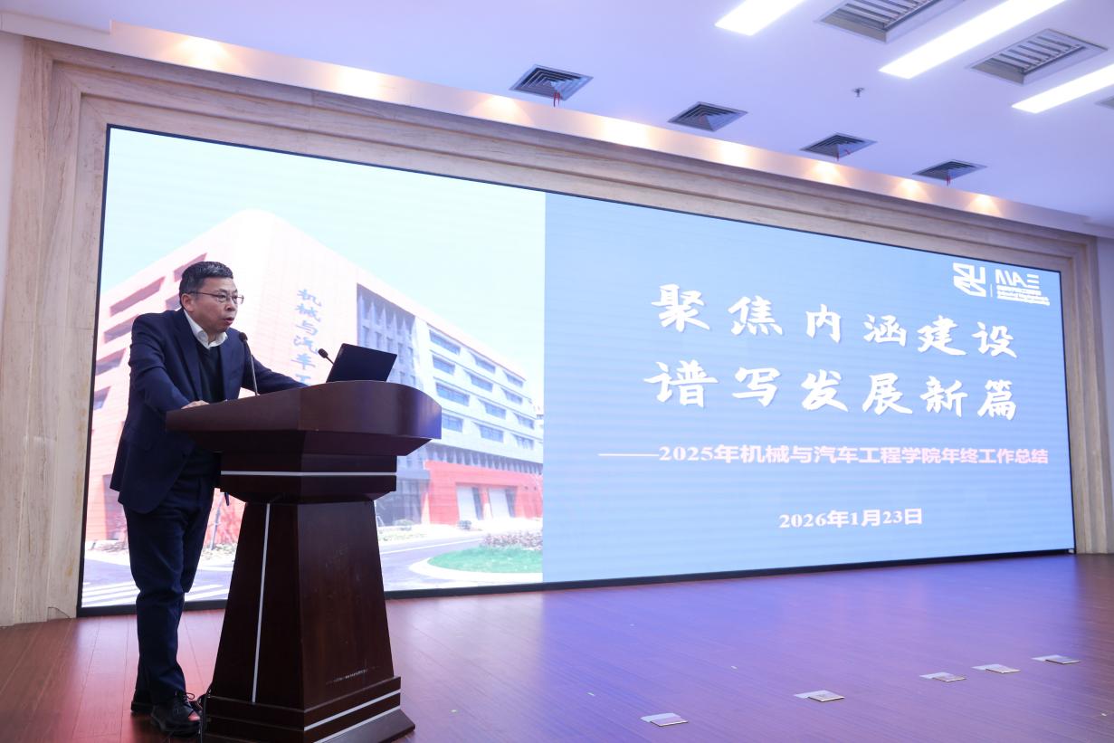 旧岁耕耘结硕果,新图擘画再远航。为全面总结2025年度工作,科学规划2026年发展蓝图,表彰肯定优秀教职工。1月23日,机械与汽车工程学院在图文信息中心第二报告厅召开2025年度总结表彰大会,全体教职工参会。大会由学院党委书记虞蓉主持。