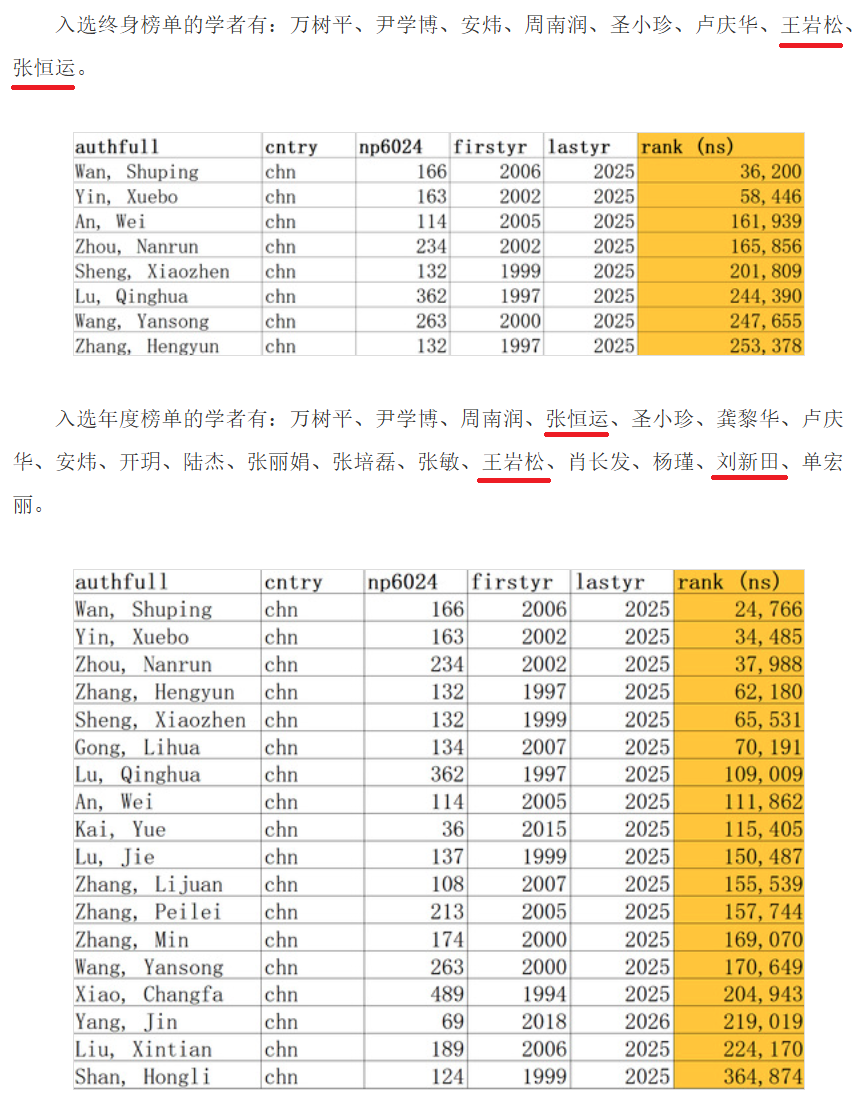 Recently, Stanford University in the United States and Elsevier, an internationally renowned academic publisher, jointly released the "2025 Top 2% Scientists Worldwide List". Professors Wang Yansong, Liu Xintian, and Zhang Hengyun from the Vehicle Engineering Discipline successfully made it to the "2025 Annual Impact List". Among them, Professors Wang Yansong and Zhang Hengyun were also included in the "Lifetime Scientific Impact Ranking List".